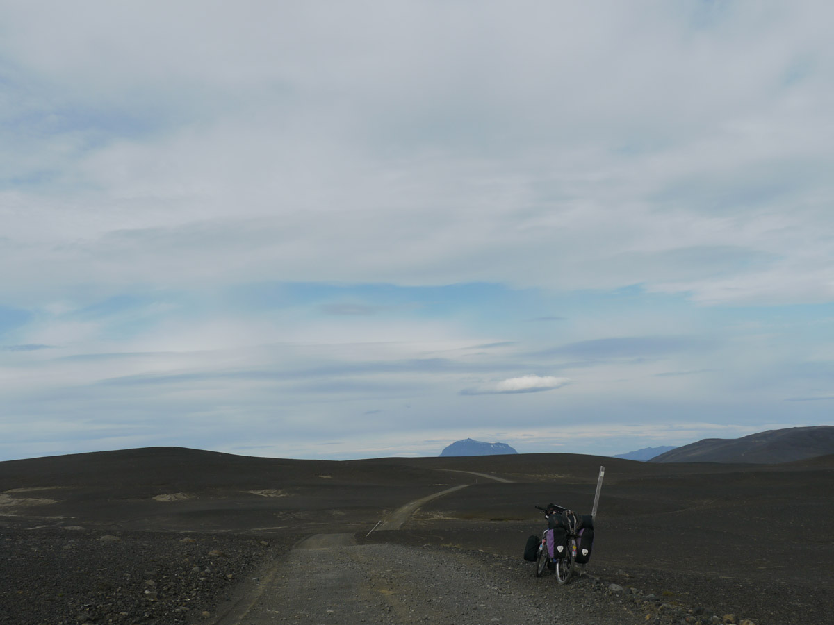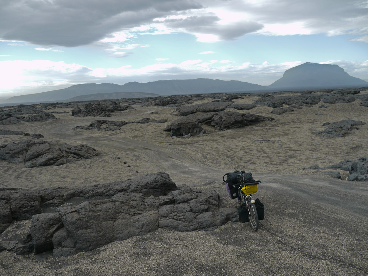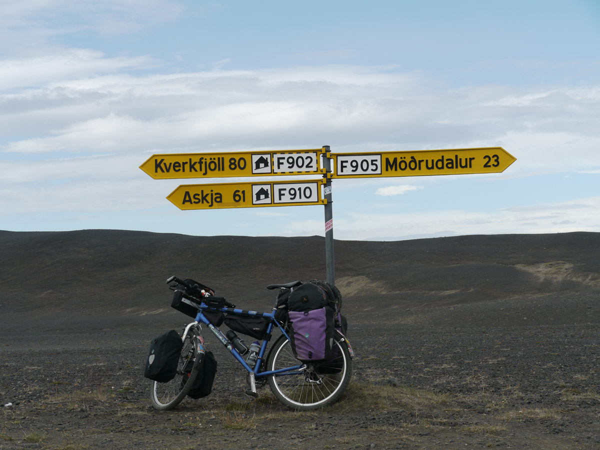 Radreise durch das östliche Hochland und den Nordosten Egilsstadir – Askja – Asbyrgi – Raufarhöfn – Egilsstadir (738 Km, 6.450 Höhenmeter, 64 Sattelstunden)Im August 2012 machte ich meine zweite Radreise in Island. Nach Start in Egilsstadir folgte ich bis zur Askja der Hochlandpiste F 910. Durch die Kreppatunga musste ich mich im 10 Km langen Sand-Schiebestück durch schweren Sandsturm kämpfen. Nach dem Besuch der Askja-Caldera fuhr ich weiter Richtung Norden durch die Ödadahraun, Europas grösste Wüste. Nach Überquerung der Ringstrasse gings nördlich weiter zum Dettifoss und nach Asbyrgi. Dort legte ich einen Ruhetag mit Heide-Wanderung ein. Dann lange windige Fahrt über Kopasker zu Islands nördlichstem Punkt und entlang der Ostküste zurück zum Ausgangspunkt Egilsstadir. Mit Leihwagen fuhr ich die Südküste entlang zurück nach Keflavik.