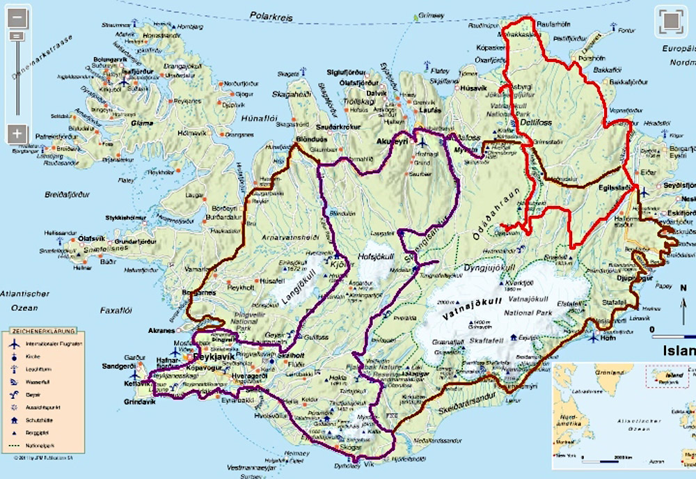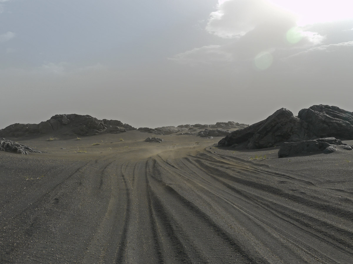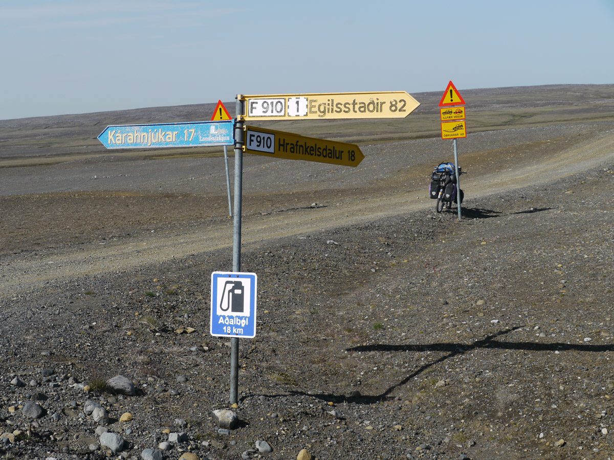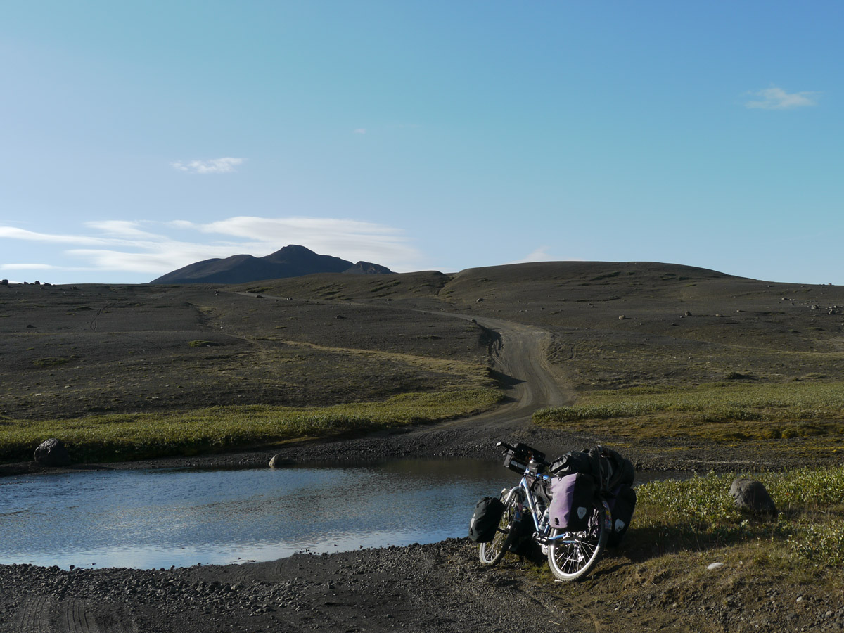 Radreise durch das östliche Hochland und den Nordosten Egilsstadir – Askja – Asbyrgi – Raufarhöfn – Egilsstadir (738 Km, 6.450 Höhenmeter, 64 Sattelstunden)Im August 2012 machte ich meine zweite Radreise in Island. Nach Start in Egilsstadir folgte ich bis zur Askja der Hochlandpiste F 910. Durch die Kreppatunga musste ich mich im 10 Km langen Sand-Schiebestück durch schweren Sandsturm kämpfen. Nach dem Besuch der Askja-Caldera fuhr ich weiter Richtung Norden durch die Ödadahraun, Europas grösste Wüste. Nach Überquerung der Ringstrasse gings nördlich weiter zum Dettifoss und nach Asbyrgi. Dort legte ich einen Ruhetag mit Heide-Wanderung ein. Dann lange windige Fahrt über Kopasker zu Islands nördlichstem Punkt und entlang der Ostküste zurück zum Ausgangspunkt Egilsstadir. Mit Leihwagen fuhr ich die Südküste entlang zurück nach Keflavik.