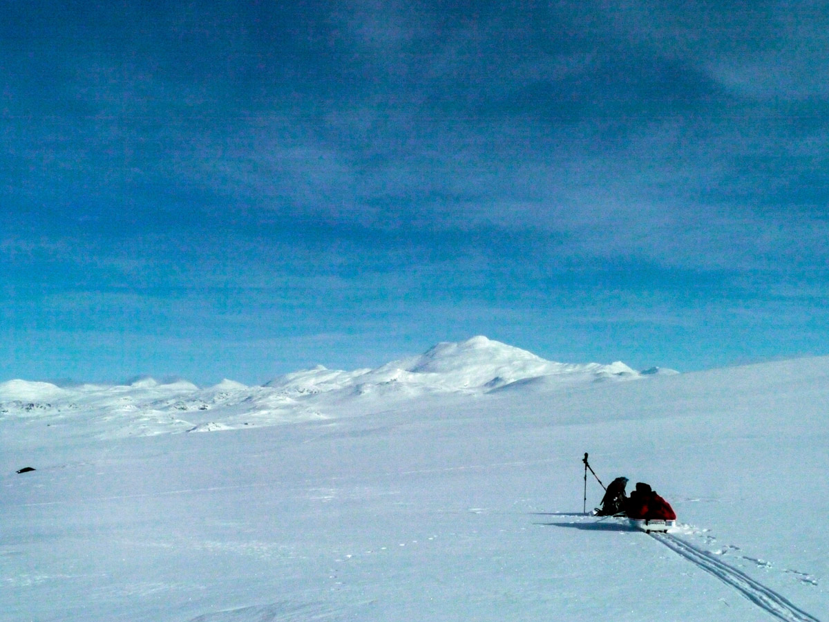 Der Weg schien endlos- im Gegensatz zu meinen Kraftreserven. Der Neuschnee nahm stetig zu, die Pulka war immer schwerer zu ziehen.