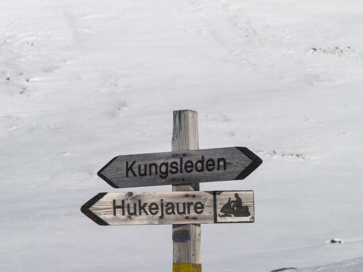 Die erste Etappe ist die Überquerung des Akkajaure auf dem Eis des Sees und weiter bis zur Akkastugorna (Hütte). Im Schneesturm kämpfe ich mich fast ohne Sicht voran, folge nach ca. 2 Km aber den falschen Markierungsstangen. Bis ich meinen Irrtum bemerke und mich gegen brutalen Sturm wieder auf den richtigen "Weg" zurückkämpfe, mache ich eine gute Stunde kaputt.
