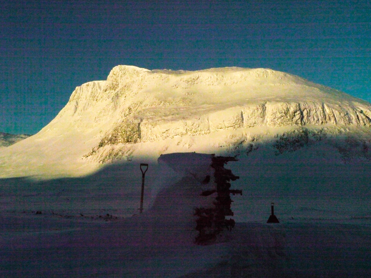 Nach nur 4 Stunden erreiche ich das Ufer bei Ritsem, wuchte die Pulka an Land, stapfe zum Auto und fahre hoch zur Fjällstation. Dort im exzellenten Trockenraum (50°C + Gebläse) hänge ich das gesamte Material auf die Leinen.