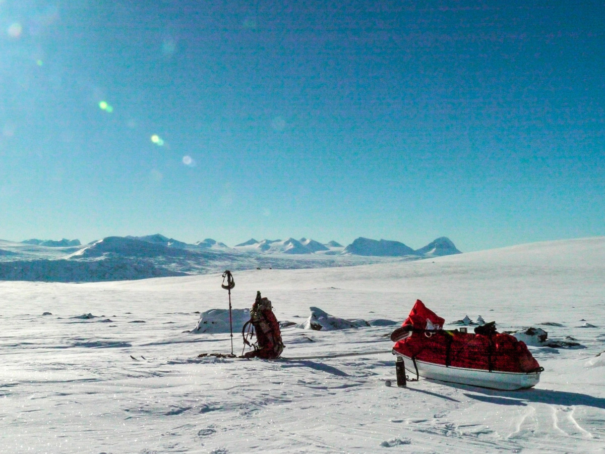 die ich in ca. 10-12 Tagen mit Ski und Pulka bewältigen möchte.