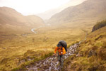 Dann der Streap- Sattel und der folgende Abstieg in's Tal des River Finnan. Immer wieder müssen wir den strömenden Bächen am Hang ausweichen.